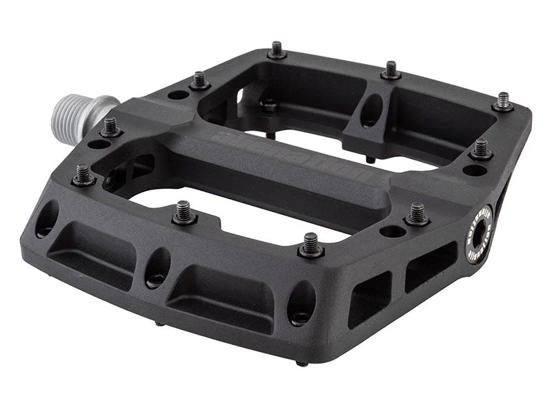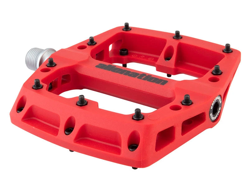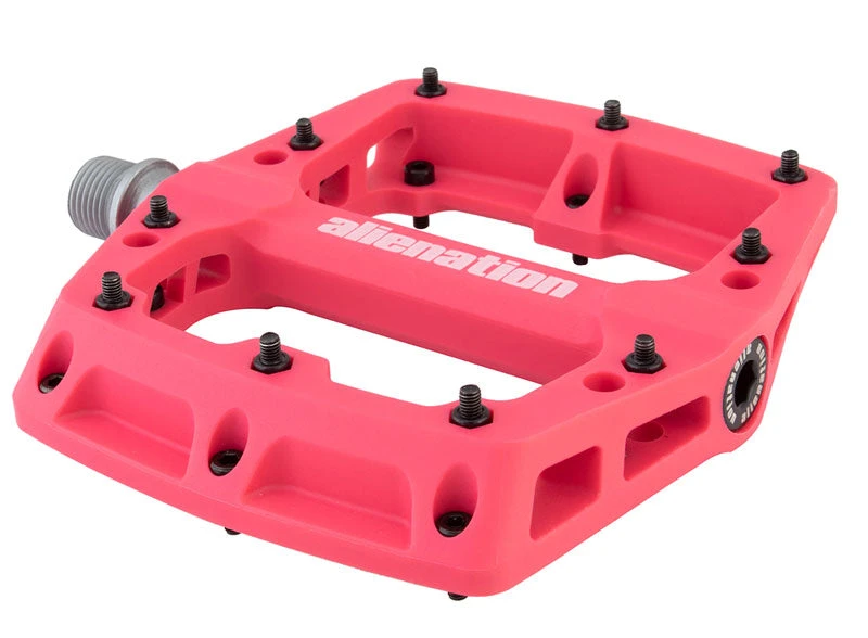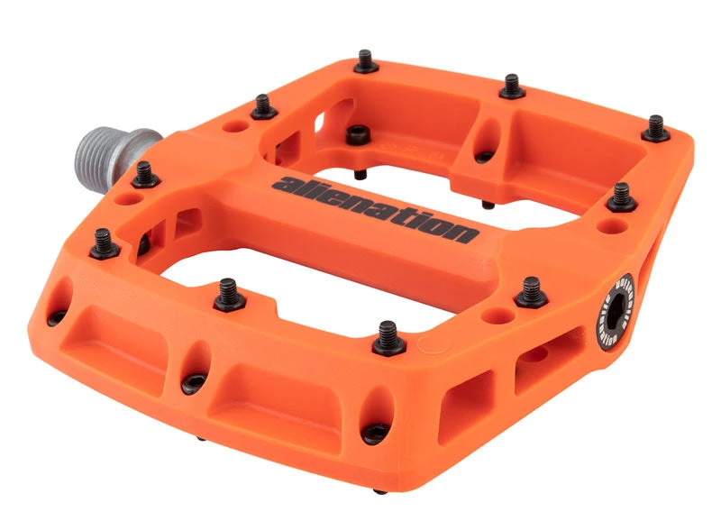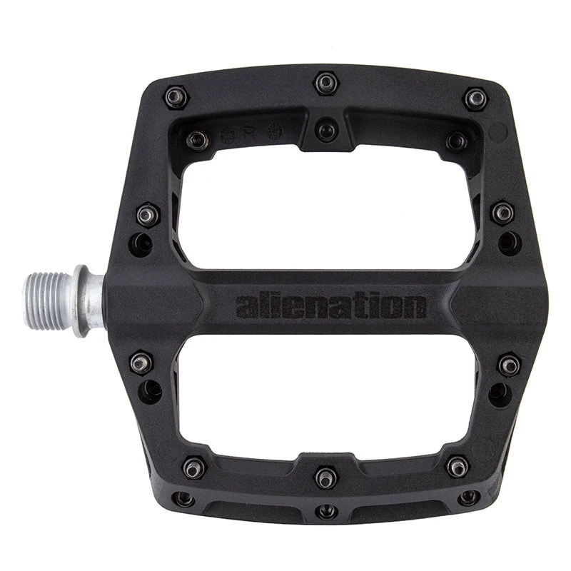 The Alienation Foothold Pedals feature a super tough engineering grade thermoplastic body attached to a CNC machined heat treated chromoly spindle. The Foothold BMX pedal uses both a sealed bearing and a self lubricating sleeve bushing for maximum durability.