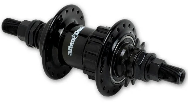 The Alienation Rush V.3 Freecoaster Hub uses the same proven KHE style internals and many of the other BMX Freecoaster Hubs on the market but with the Rush V.3 Hub you are able to adjust the slack with just allen wrench without having to remove the wheel. This is done with a set screw in the end of the axle. Very convenient for those that may rider several styles of BMX. The shell is made of 6061-T6 aluminum, is set up with a 14mm male axle and had ACB quad sealed bearings. This is a rad Freecoaster hub.