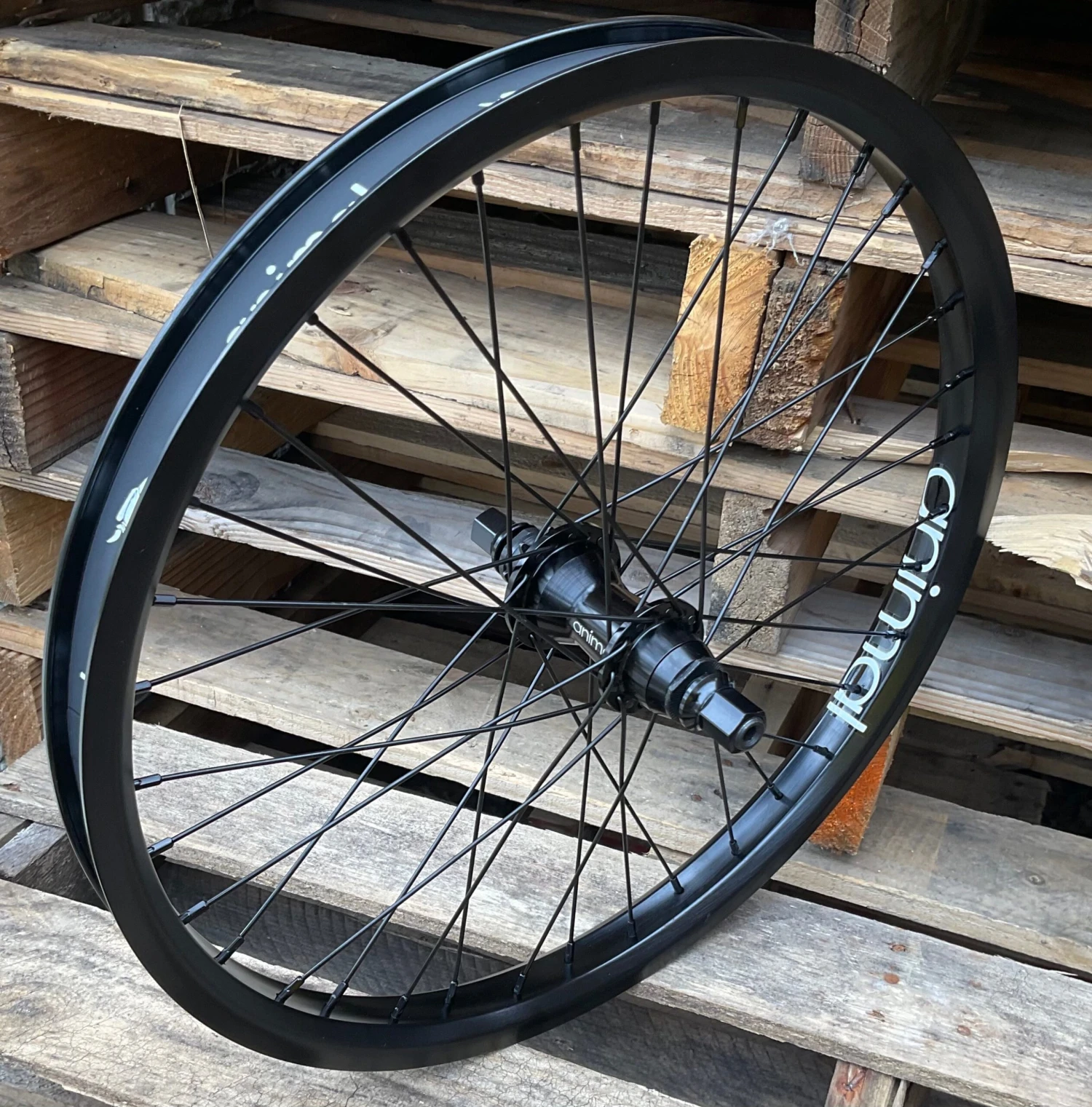 Animal Javelin Cassette Hub: 36 hole and CNC’d from 7075 aluminum, the shells have a smaller non drive side flange for better flange protection and come with a 9T driver. The one piece chromoly driver uses two polymer bushings, instead of a set of small bearings, for longer life. The 14mm chromoly axle is hollow and has a 8mm hex broach and color matched 7075 aluminum axle nuts.