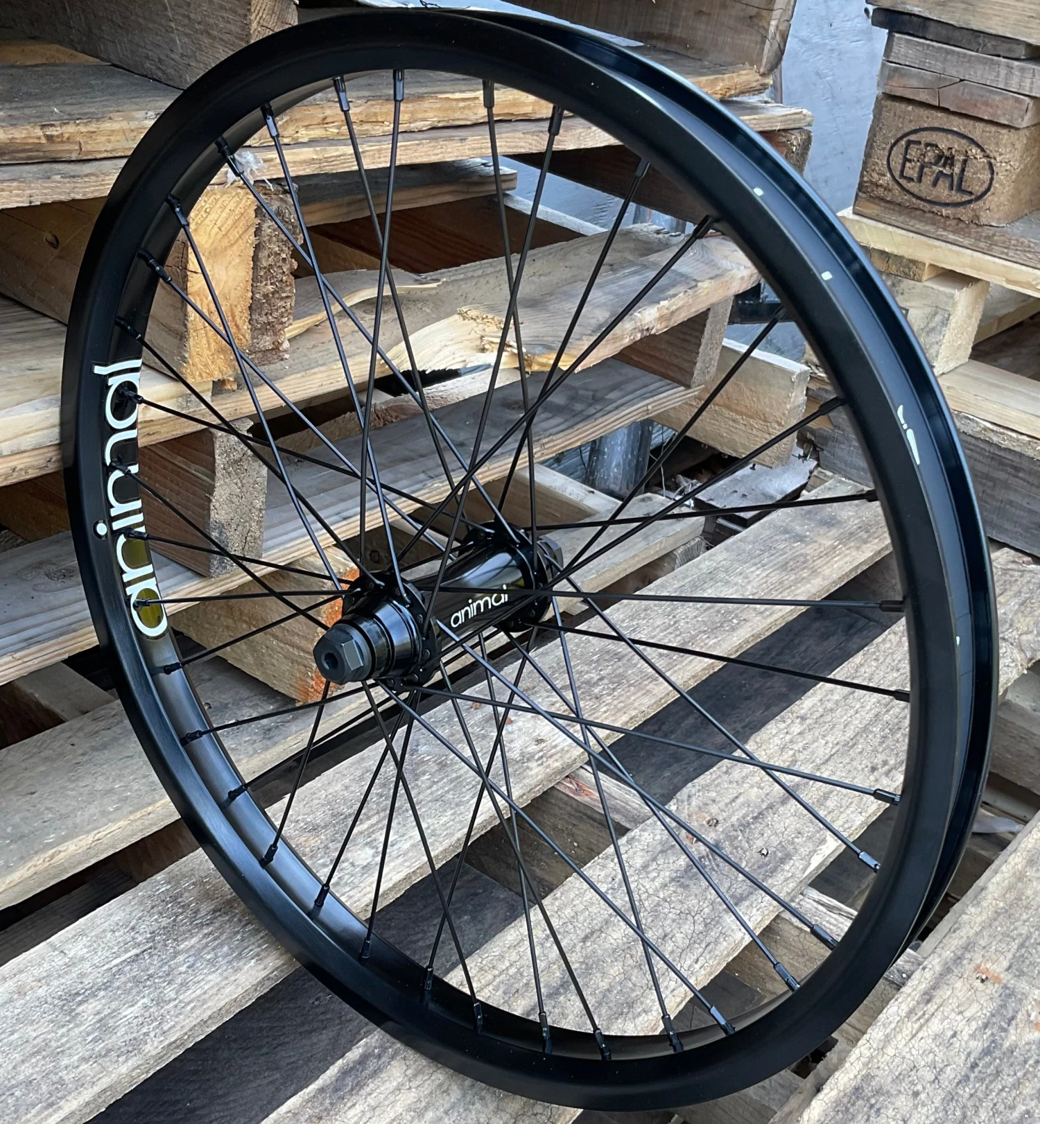 Animals low flanged, 36 hole hub, Javelin hub laced up to Animals RS rim for a sturdy street combo. A 7075 aluminum shell featuring a female axle design.
