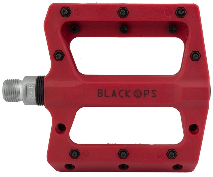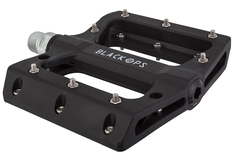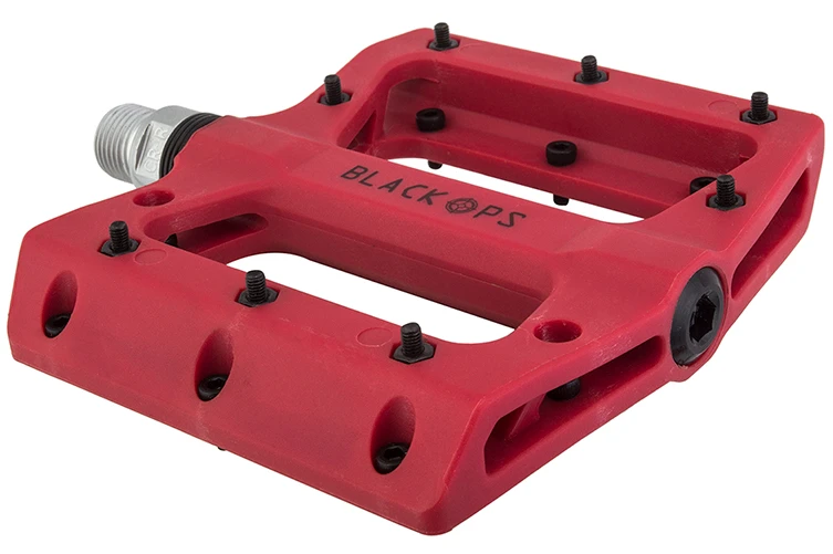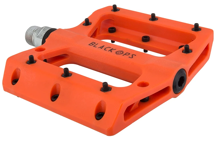 Put the pedal to the metal (pins) and keep your feet in place in all conditions. The Black Ops Nylo-Pro II pedals feature super strong, lightweight, low-profile nylon composite bodies with 8-steel removable Allen bolt pins per side. Each pedal features a single sealed bearing on the crank side and a durable DU bushing on the outside for smooth running operation. Heat-treated chromoly spindles are there for the long haul.