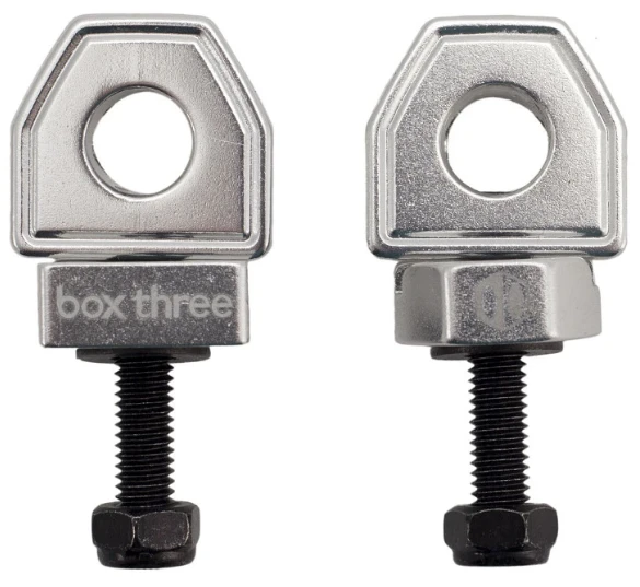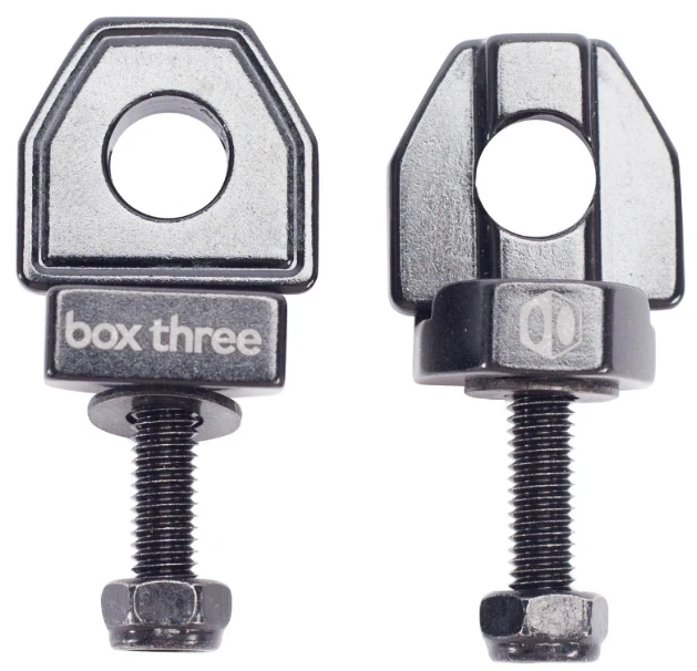 Adjusting chain tension is quick and easy with the new Box Three™ Chain Tensioner. With a single hole “lollipop” design, these tensioners reduce weight and help keep your rear wheel locked in place.