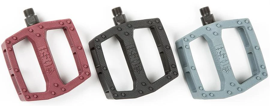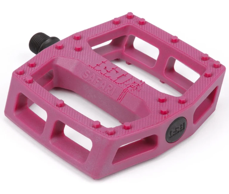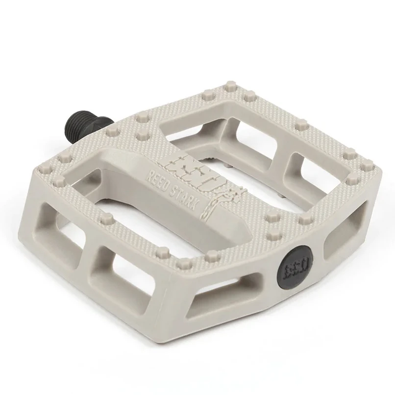 Introducing the Reed Stark signature Safari Pedal. Reed has been talking about this pedal idea for as long as he’s been on BSD. He noticed that when a bike falls to the ground, the corner pins on plastic pedals grind and break off. The Safari pedal is designed with extra pins in these high impact areas to ensure the pedal stays grippy after withstanding severe abuse. The optimal pin placement, hexagonal pin shape, and knurling all combine to make this one of the most durable, effective plastic pedals on the market.