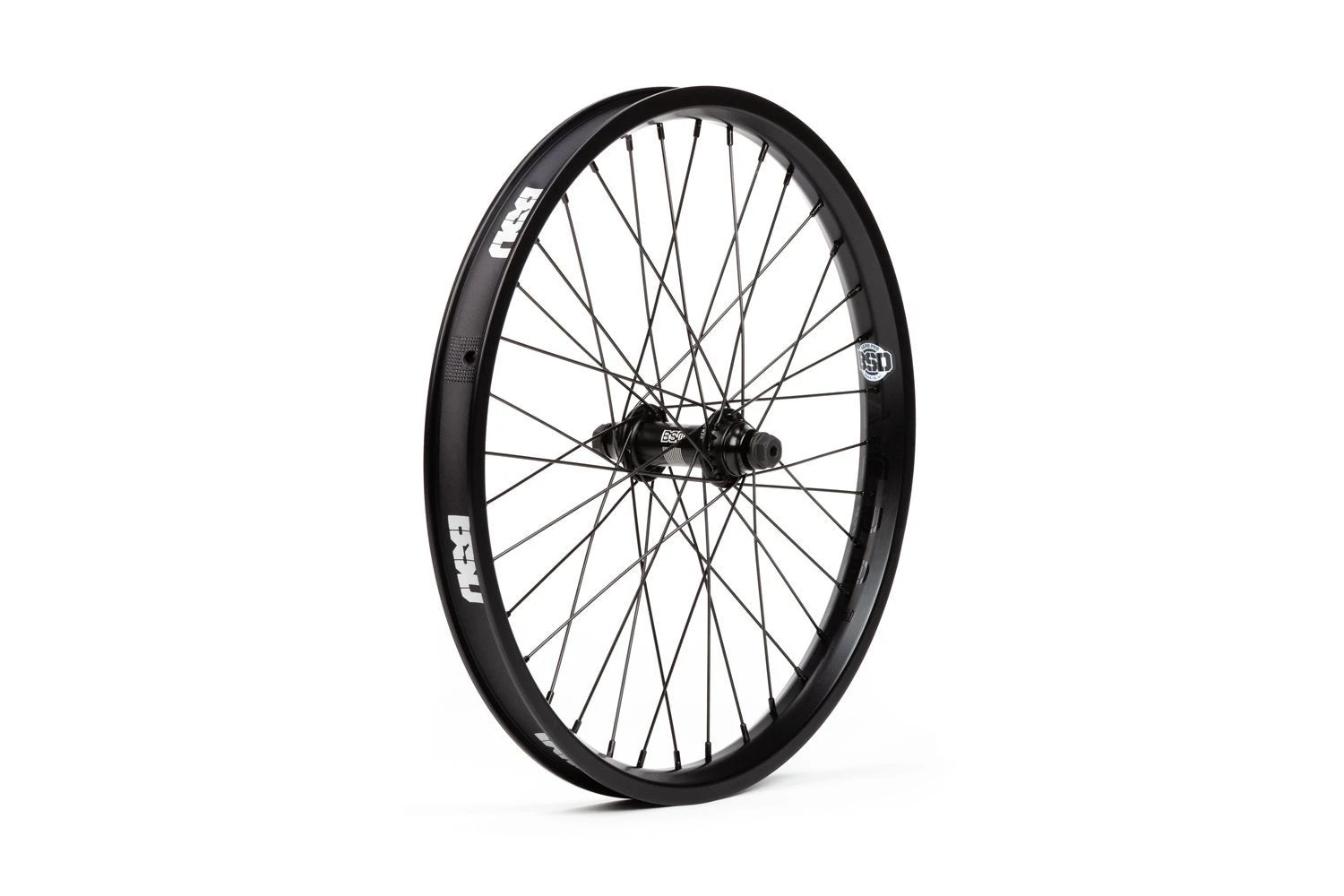 The BSD Swerve + Aero Pro front wheel is built tough with the Aero Pro rim, made from super strong 6066-T6 aluminium with thicker, tapered sidewalls, double-wall construction, angled spoke seats and welded seams. The Swerve hub uses the same proven chromoly female axle and hardware as the Front Street Pro hub, but with an updated alloy shell to match the look of the new Swerve cassette hub. Complete wheels don’t come much nicer than these.