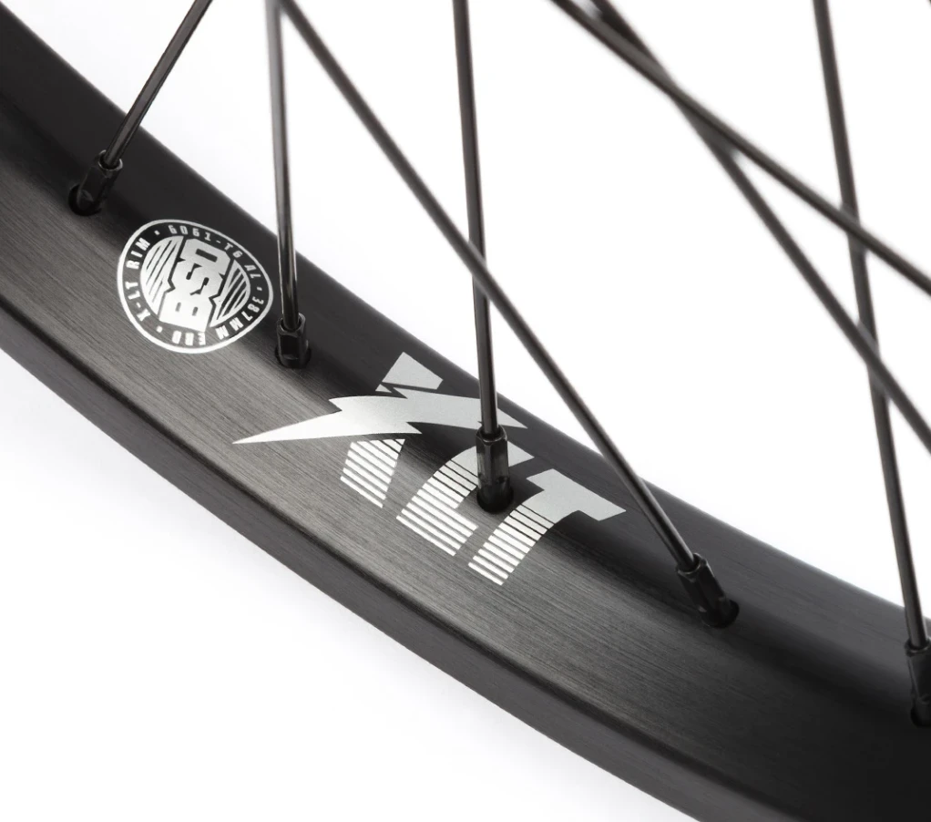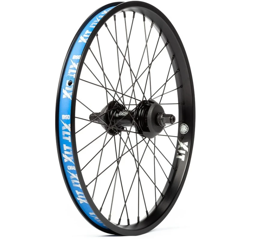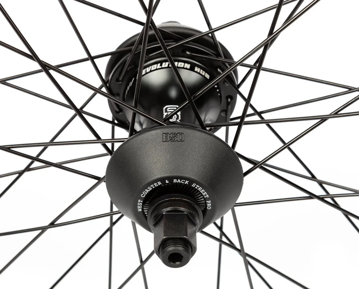 The BSD XLT Revolution Freecoaster wheel is everything you’re looking for with all the pro’s of a cassette but without the hassle of back peddling. The Revolution hub is BSD’s new freecoaster hub that feels like a cassette hub, weighs the same as a cassette hub, has a pedal gap like a cassette hub and sounds like a cassette hub, but its a freecoaster! Laced up to BSD’s super light but super strong XLT rim and finished off with a fresh set of hubguards, what else could you ask for?