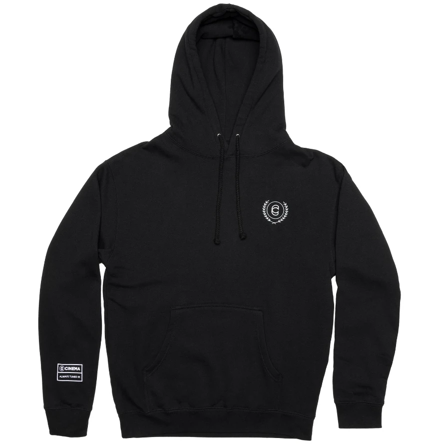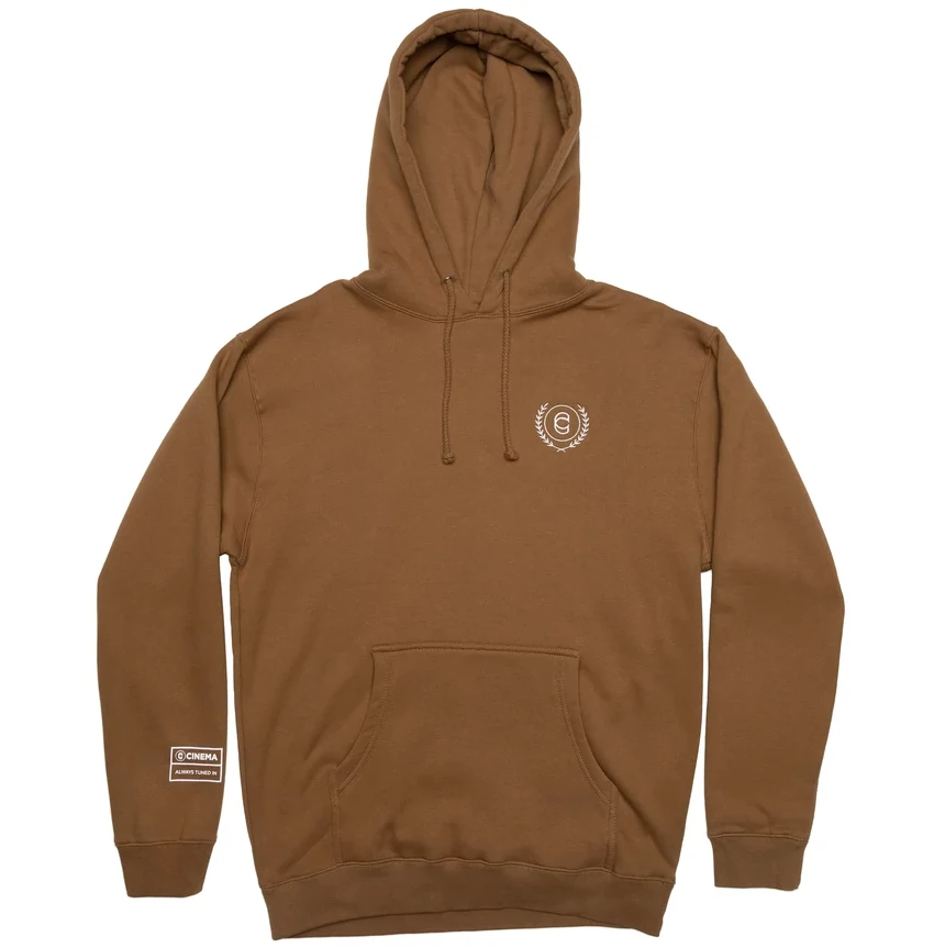 The Cinema Laurel Pullover Hoodie is a heavy weight pull over with an inner fleece lined hood. Embroidered chest logo.