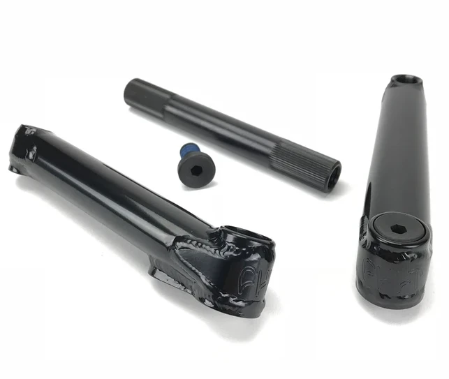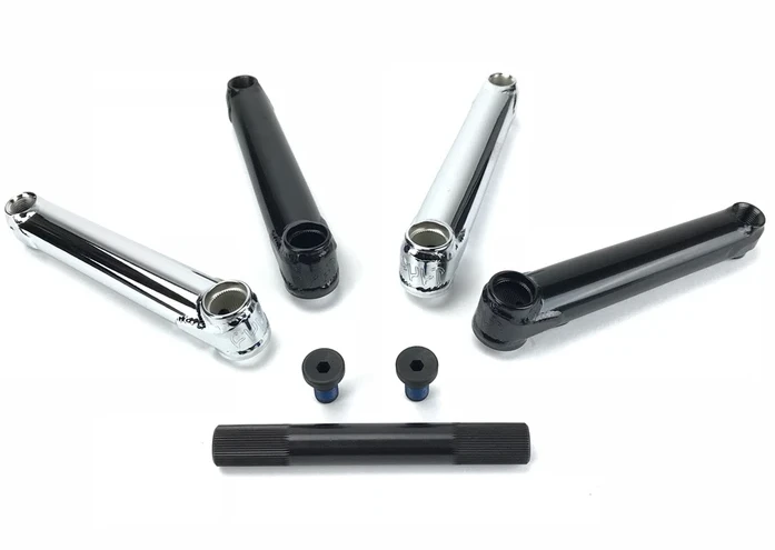 Wrap around gusset design. 3-pc tubular design with heat-treated swaged chromoly arms, 1-pc spindle/sprocket boss, 19mm hollow chromoly spindle with 48 splines and a single flush mount hollow spindle bolt.