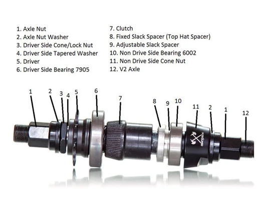 | Options | Slack Washer Set, V4 Axle, Driver Bearing #6802-14RS, Drive-Side Cone / Nut, Drive-Side ACB Bearing #7905/25W9AC, LHD Clutch, Non-Driveside Bearing #6002-2RS, RHD Clutch, V2/V3 Axle, V2/V3 LHD Driver, V2/V3 RHD Driver, V4 RHD Driver, V4 LHD Driver |