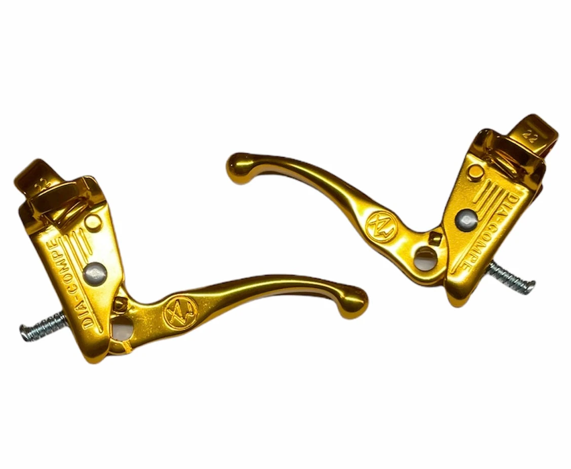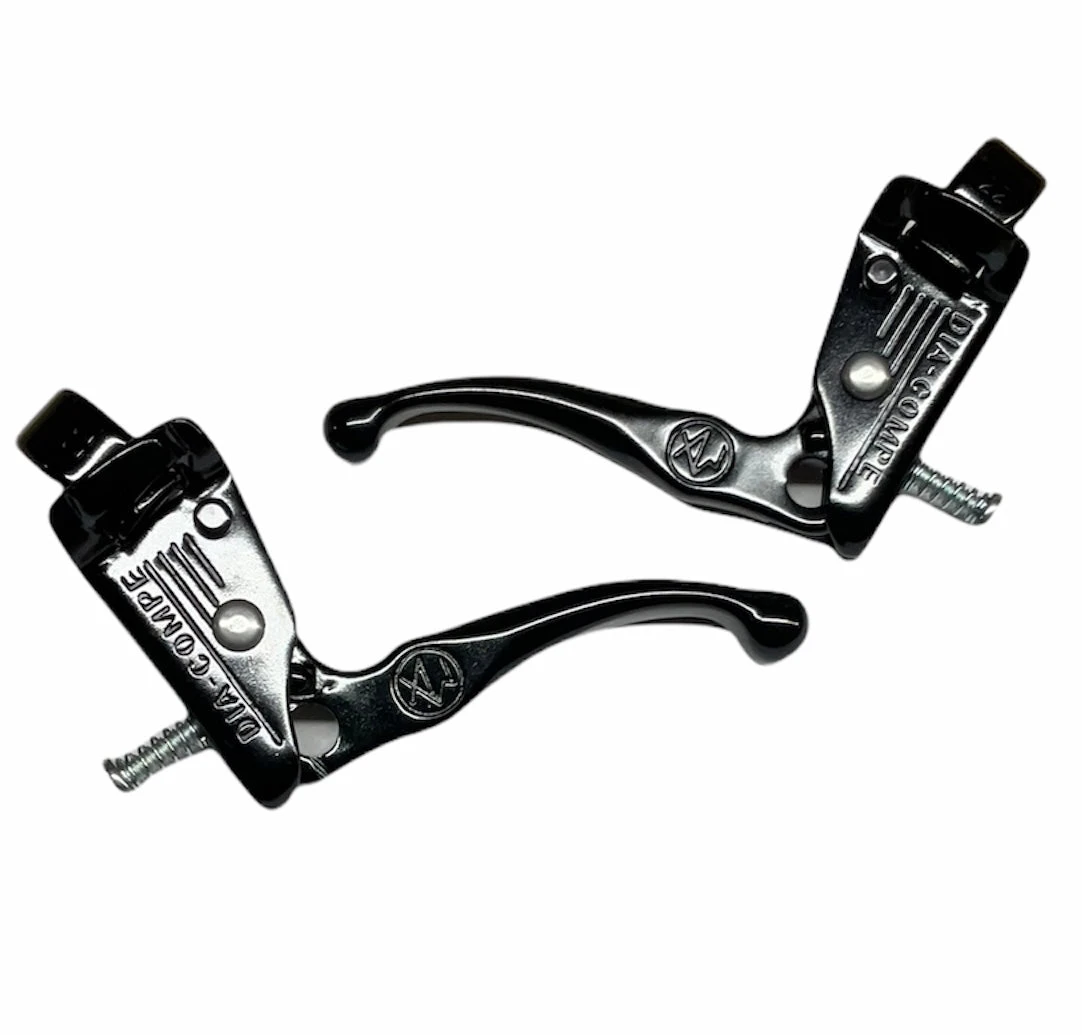 Re-issue Dia-Compe Tech 3 brake lever set. Remember these levers require “end buttons” as they have no threaded adjusters. Grab some here.