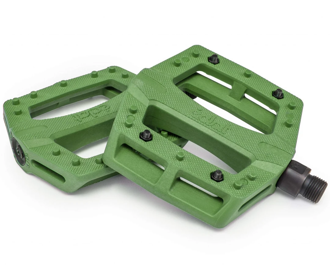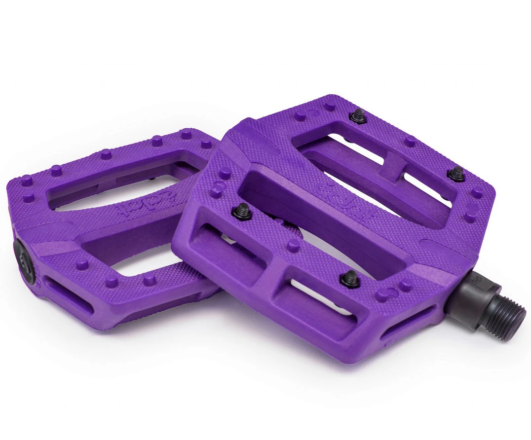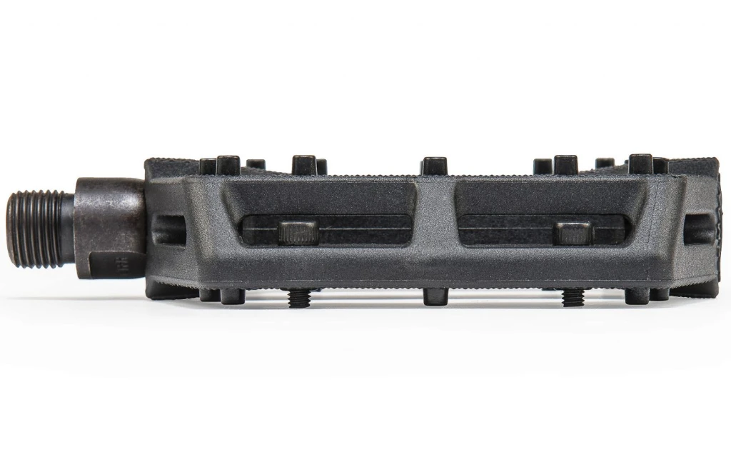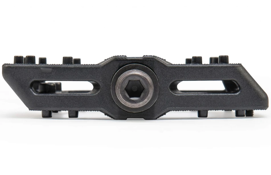 With removable pins on one side of the pedal, you can keep one side nice and grippy, and one side for grinding on. You can also put the steel pins in after the molded pins have been worn down to give more life to your pedal.