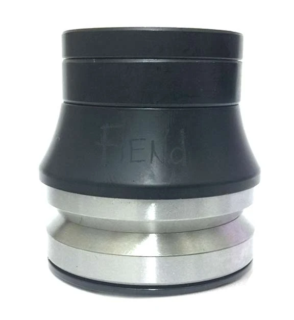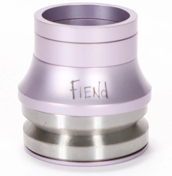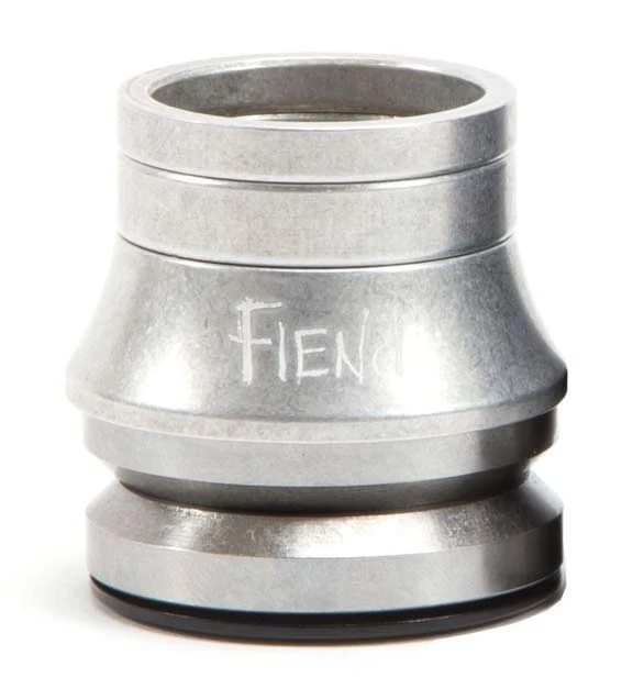 Integrated Headset with 45/45 spec sealed cartridge bearings, 10mm stack height aluminum cap with internal O-ring and laser etched Fiend logos. Available in Black, Raw, Bronze and Deep Red