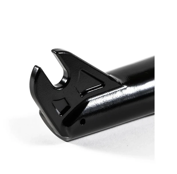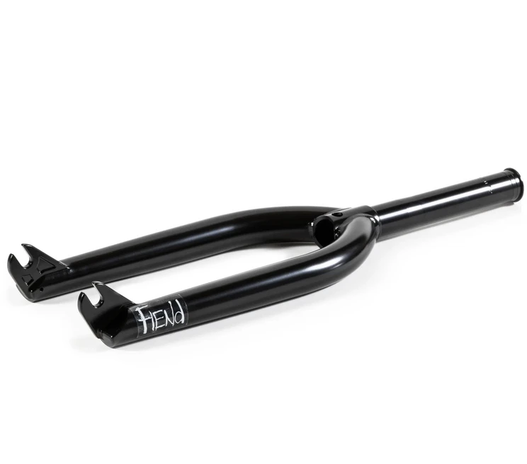 Fiend’s new Invest fork features: Fully heat-treated chromoly tubing throughout with a 1pc.Machined steerer tube with integrated bearing race for use with all 45/45 headsets 6061 alloy compression bolt.The 6mm thick investment cast drop out and lower leg junction provide the ultimate strength while maintaining a clean look. 26mm offset helps keep the front wheel under the rider for easier nose manuals. 34ozs.