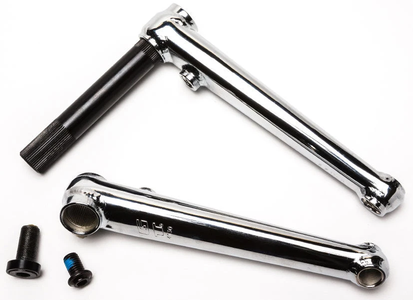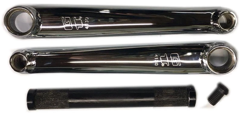 These GT Bikes Chromoly Cranks are made to look a lot like the original GT Chromoly cranks made by Profile Racing back in the 90’s. However these cranks are built to the newest standards. This makes the GT Chromoly crankset perfect for those looking to ride hard or for those looking to restore an old BMX bike with cranks that look like the originals.