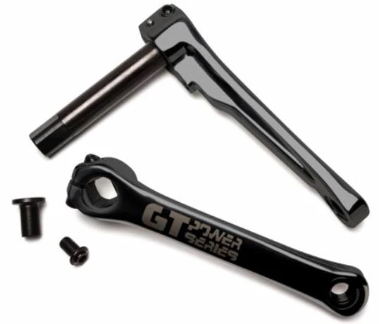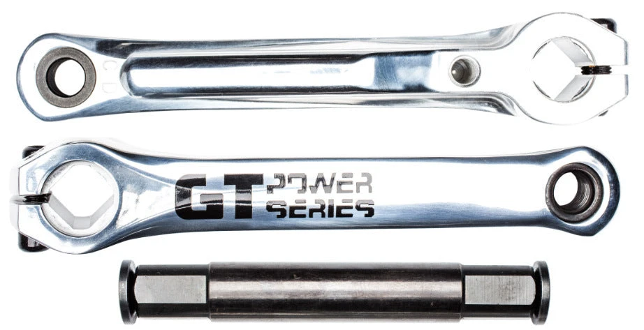 The GT Bikes Power Series cranks were one of the most sought after cranks in BMX in the 80’s and 90’s. For some odd reason GT stopped making them for many years until now. Made to look just like the originals but with a few upgrades such as steel inserts in the pedal bosses and a 22mm spindle. The arms are forged and are made from 7075 aluminum and will work for both RHD and LHD. The GT Power Series cranks are great for today’s rider or perfect for those looking to keep and old school BMX bike looking the way it should.
