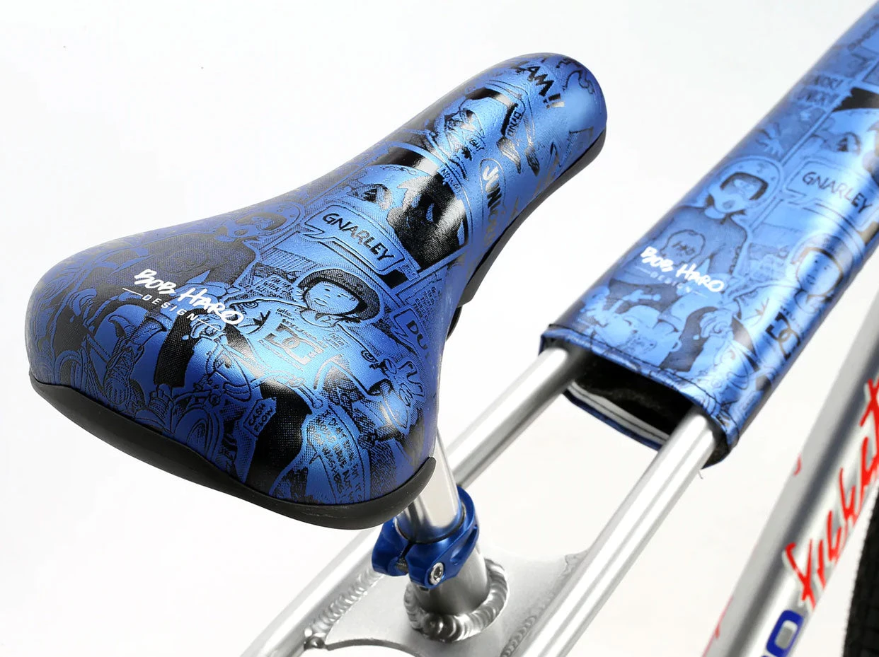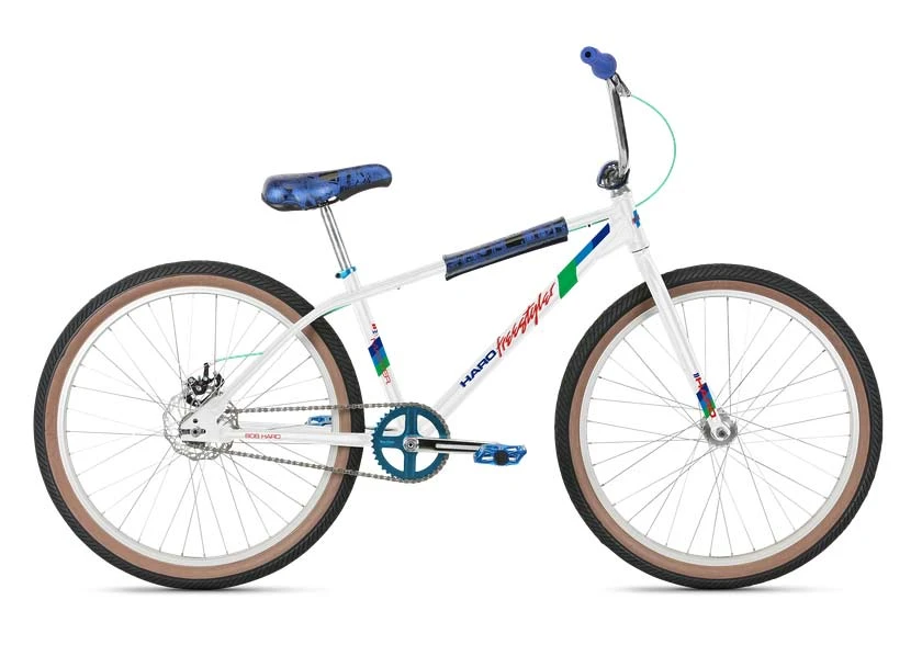 There isn’t too much to be said about the Haro Bob Haro Freestyler 26″ Bike other than it’s REALLY RAD! Retro styling with the famous twin top tube the Freestyler was always known for as well as a bunch of Haro’s top of the line components such as 48 spline cranks, disk brakes and even “Vector” style bar / stem combo.