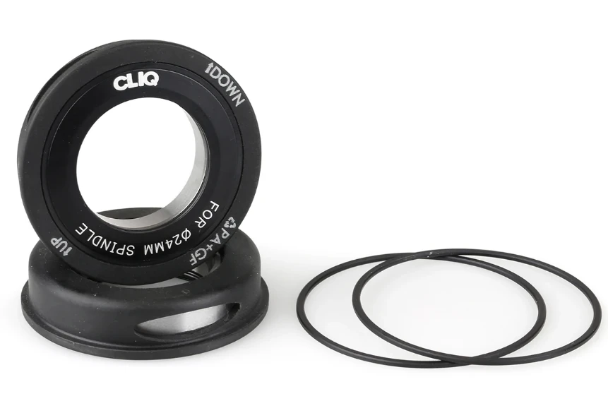 The CLIQ BB92 bottom bracket is a press-fit style BB set compatible with frames which have 86mm wide “BB86” bottom bracket shells. The sealed bearings keep things spinning smooth and are compatible with 24mm crank spindles.