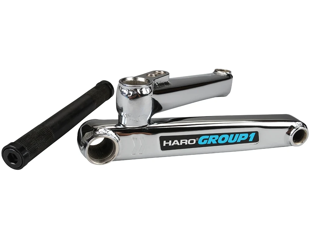 Haro’s new Lineage Group 1 cranks are made to resemble Haro’s original Group 1 cranks from back in the day. 100% chrommoly arms and 19mm / 48 splined heat treated spindle. The Group 1 cranks will work both RHD or LHD. Haro was even nice enough to include a few different color arm stickers separately so you can make them match the colors of your bike.