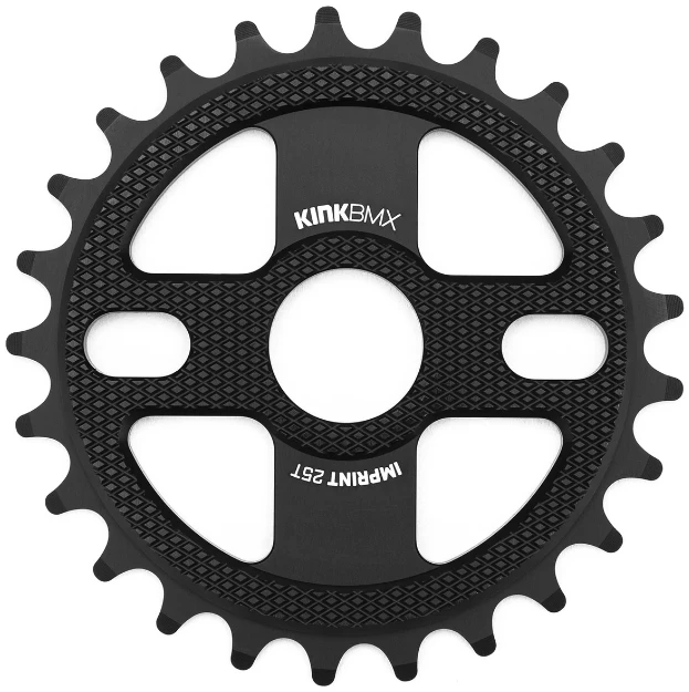 The Kink Imprint sprocket brings you the bling! Fully CNC’d from 6.35mm thick 7075-T6 aluminum keep this sprocket strong and light. The offset teeth provide a better chain alignment giving you the smooth ride you are looking for.