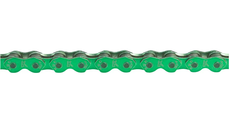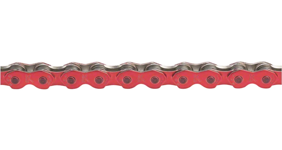 The KMC K710 Chain features a taller inner and outer plate to help reduce the chance of the chain popping off the sprocket. A strong, built to last chain for your single speed bike.