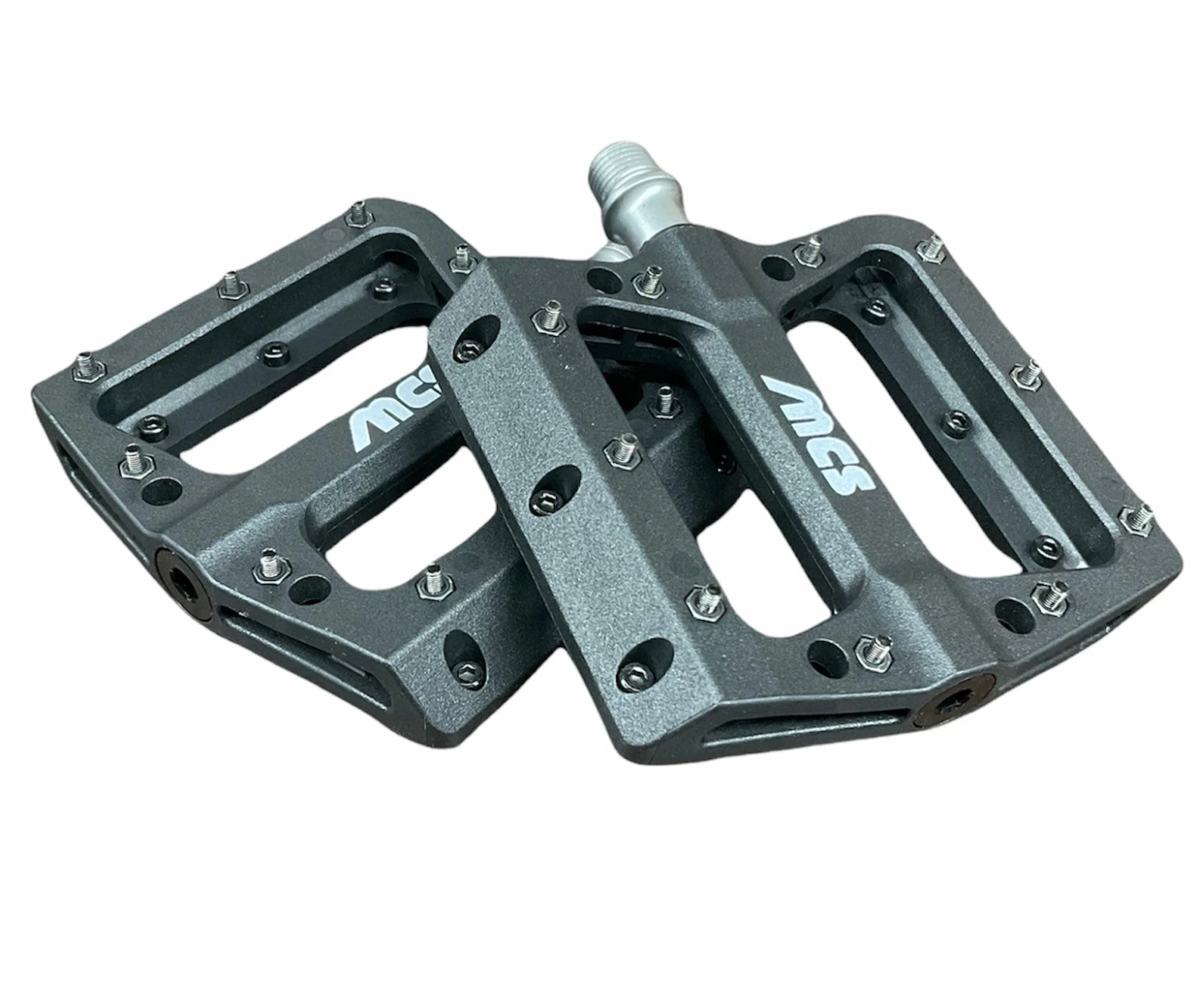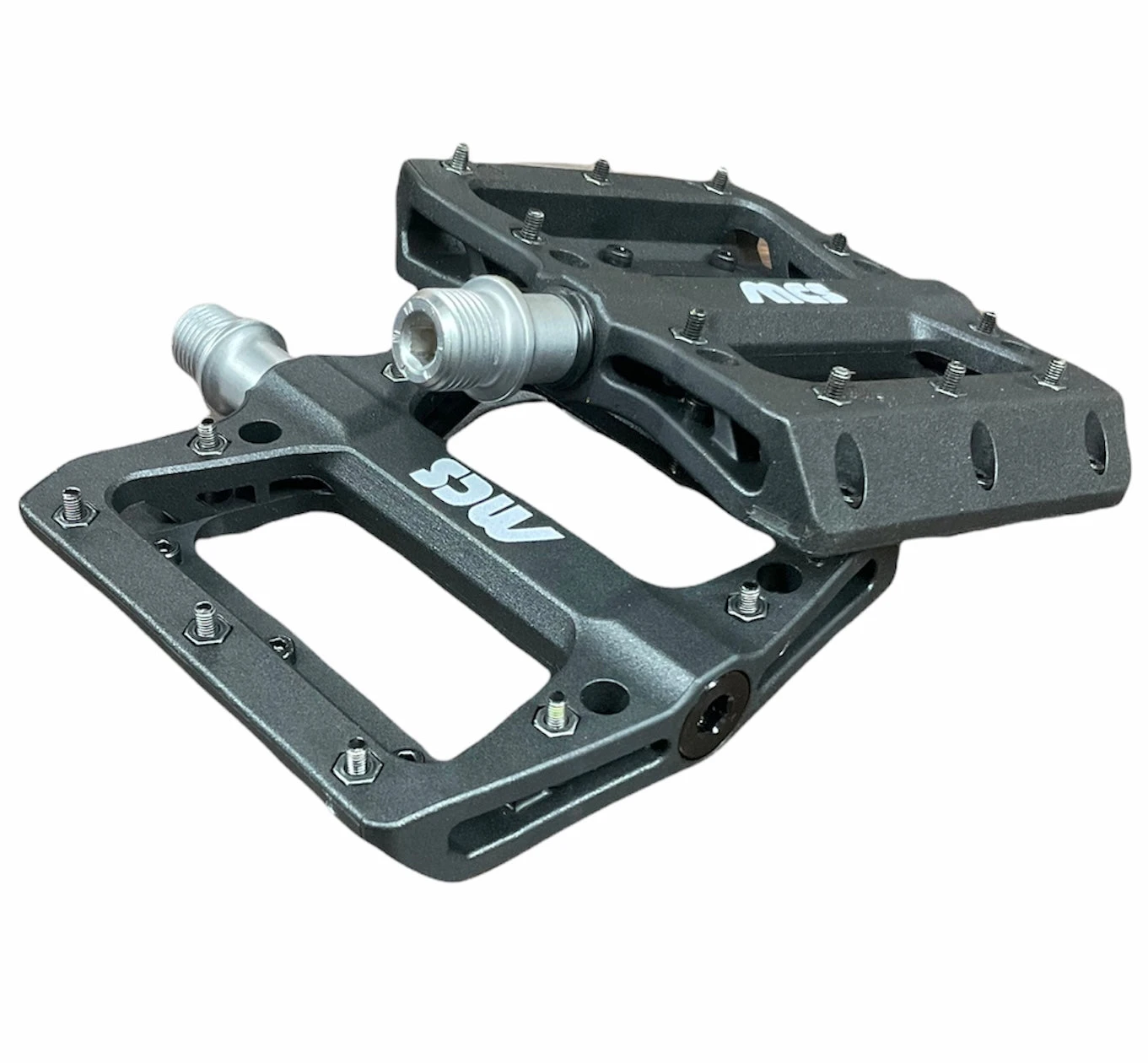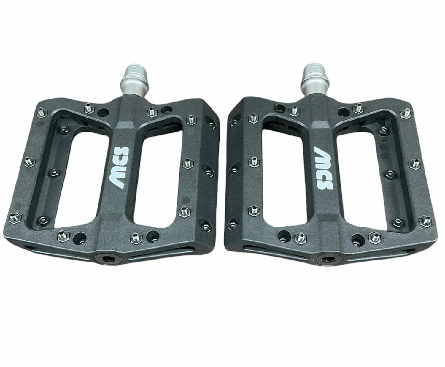 The MCS Platform Pedal feature a nylon composite body with replaceable metal pins. CNC macined 4130 chromoly spindle with dual sealed bearings.