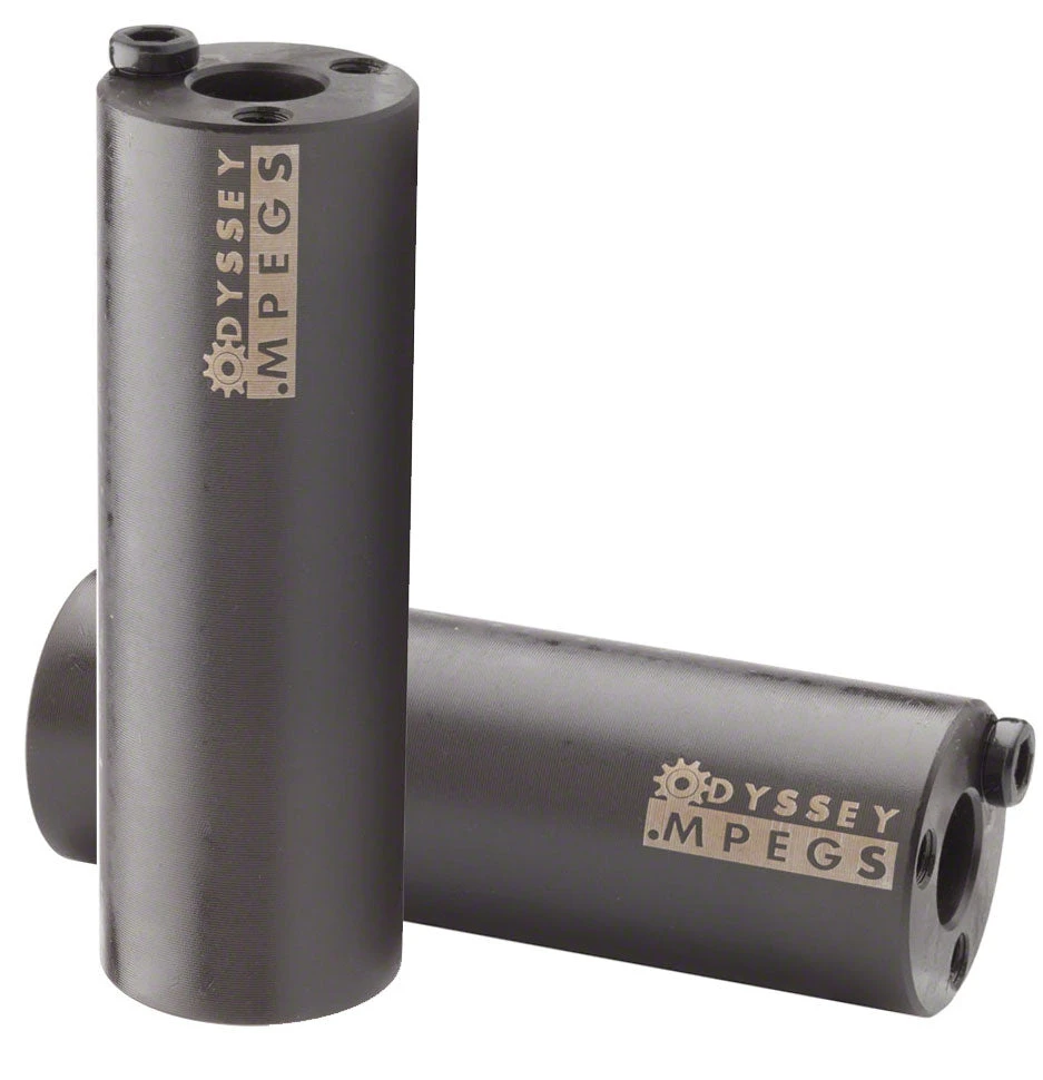The Odyssey Mpeg Pegs come in a pair and for this price can’t be beat. Made from 4140 heat-treated chromoly and is drilled in three spots for an anti spin pin. The Mpegs are drilled out to fit 14mm axles but include adapters to fit 3/8″ (10mm) axles as well.