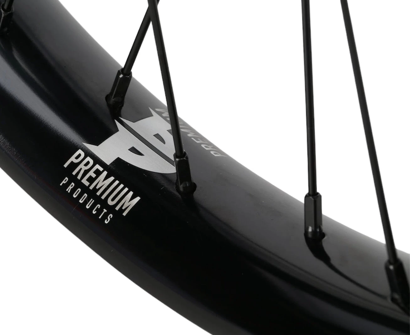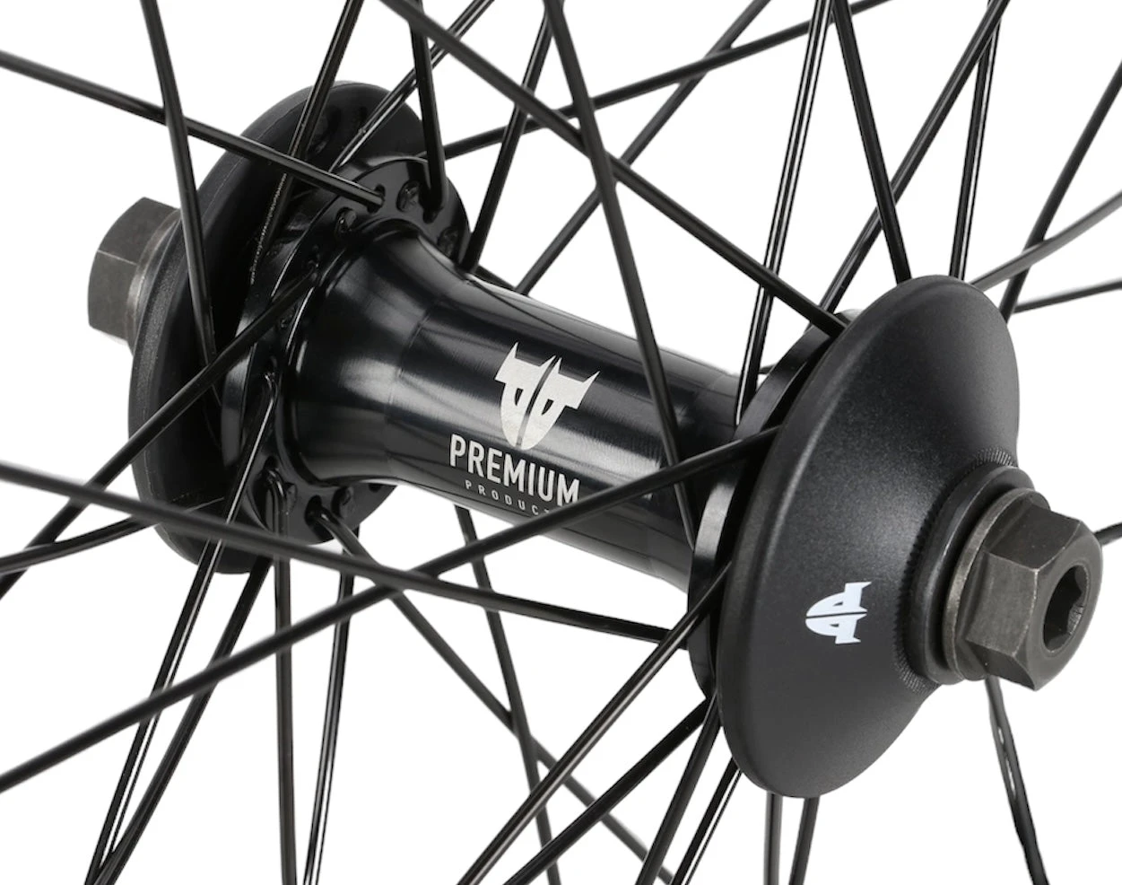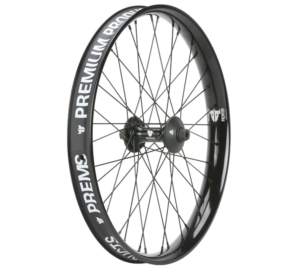 The Premium Curb Cutter Front Wheel features Premium’s Team Hub laced up to the new extra wide Varanyak rim. The Varanyak rim is a brakeless specific rim that is extra wide to help prevent tire roll over at lower pressure, improved reduction in tire bulge, and better tire surface contact.