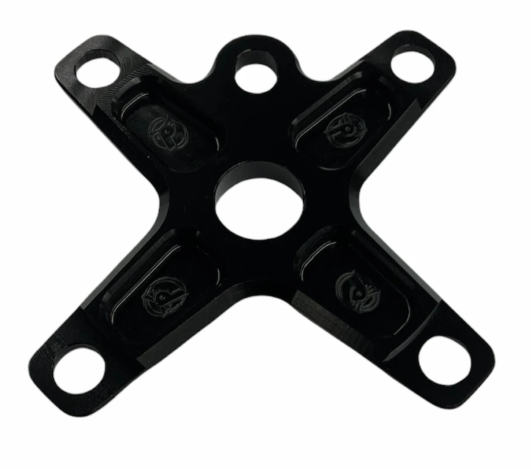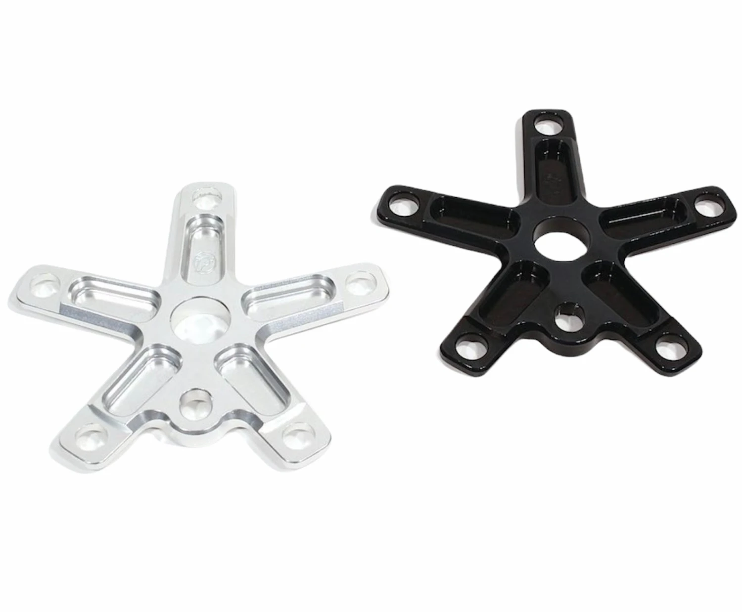 The Profile Bolt-On Spider (Single Chainring) is for use with Profile Racing 3-Piece Race Chromoly Crankset with a standard sprocket bolt and 19mm (.75″) BB axles. Chainring can be mounted on inner or outer face of spider for chainline adjustability. Works best with the Profile Internal Bearing Euro BB, American BB, MID BB, or Spanish BB.