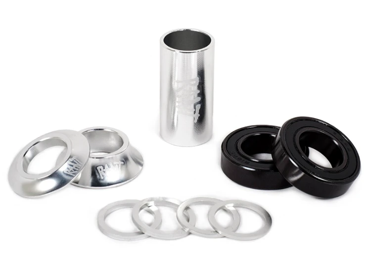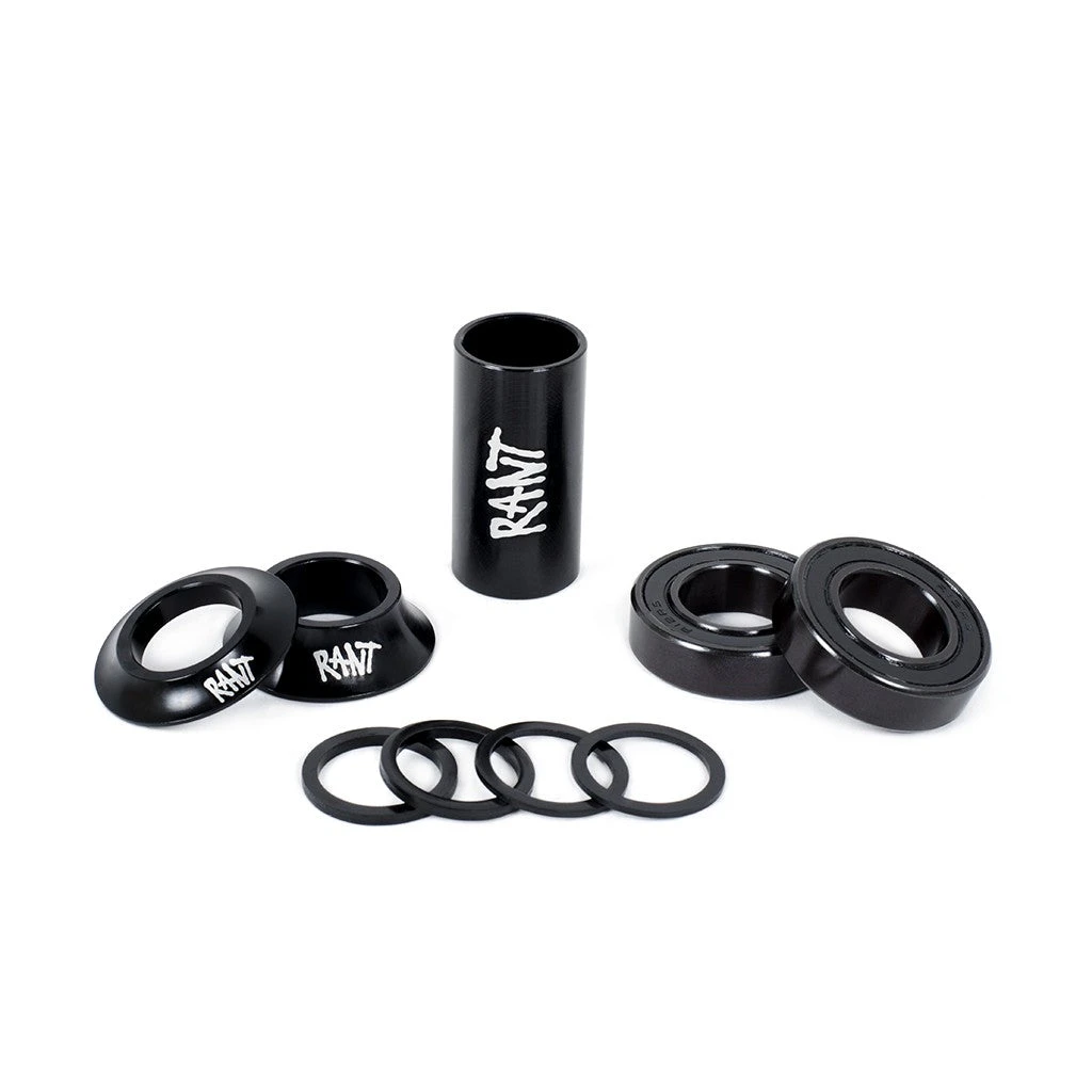 The Rant Bang Ur BB kit includes 2 precision R12 sealed bearings, 2 CNC machined 6061 aluminum cone spacers for a clean look, an aluminum internal spacer, 4 steel crank arm spacers for dialing in your chain alignment.