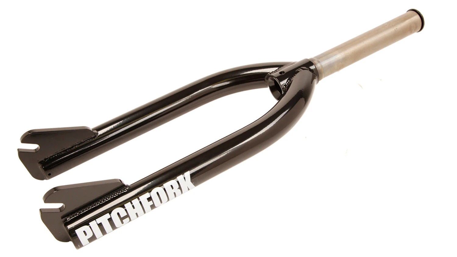 | By 2000, heavy peg use resulted in a larger “Wrap-Under” Pitchfork drop-out design. Along with the larger drops, the Y2K Pitch featured an industry first, one-piece CNC machined steerer-tube. LEGS: 1.25″ | |