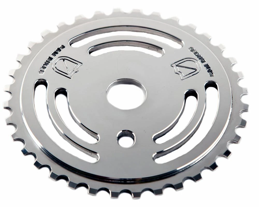 The S&M Drain Man Sprocket is made from CNC Machined 6061 Aluminum in the USA. The 1/8″ teeth are tough and ready for any type of BMX abuse. There are different color options available and lots of teeth sizes as well.