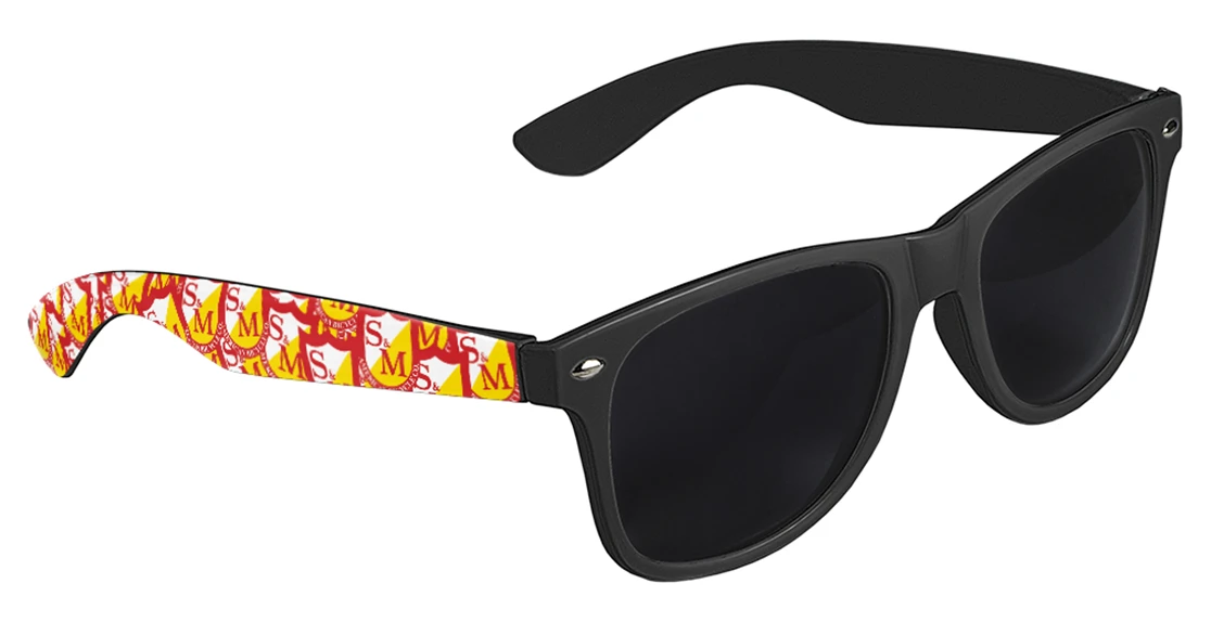 The S&M Shield sunglasses features high-impact nylon frames with tinted polycarbonate lenses, which is all good for keeping the sun out your eyes, but let’s face it, the full-wrap S&M Shield logos on the arms is what we really want here.