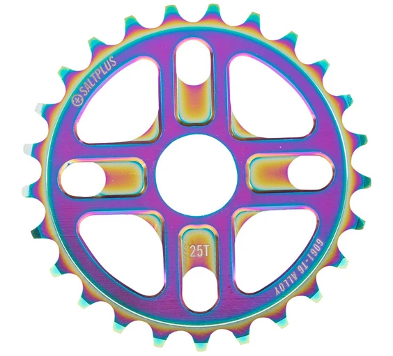 The Salt Plus Manta sprocket features four sprocket bolt holes to prolong life by providing multiple rotation points.