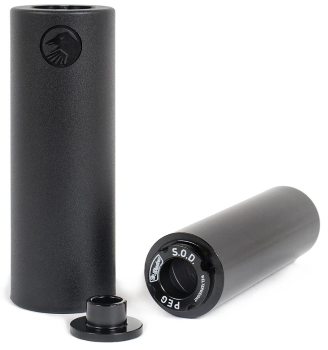 Introducing the S.O.D. Welterweight and S.O.D. Featherweight Peg Systems. The S.O.D. Featherweight is the lightweight version with a 7075 alloy core. The S.O.D. Welterweight features the same heat treated and butted cro-mo core as the original S.O.D. peg, but now with an improved nylon composite sleeve material, so that it lasts longer and still slides fast. Both styles use the same sleeve, so replacements (sold separately).