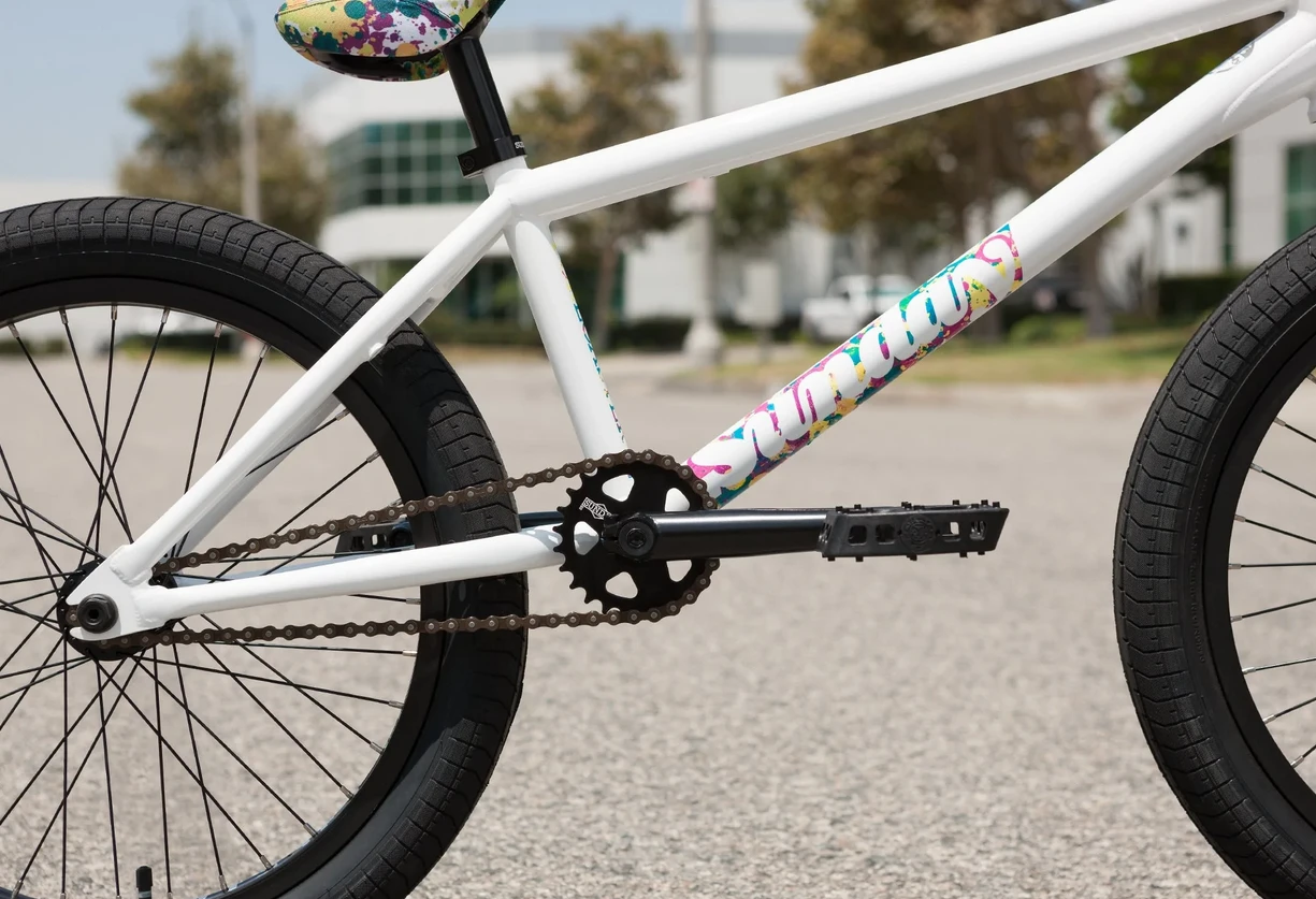 The Sunday Forecaster Ross Signature Bike 2023 brings you everything you love about Sunday’s Forecaster line up but with some Aaron Ross flair. The solid feel of the 100% chromoly frame also looks good in the sleek gloss white with paint splatter-eqsue accents. Sunday made sure to include Aaron’s signature Odyssey seat and grips.