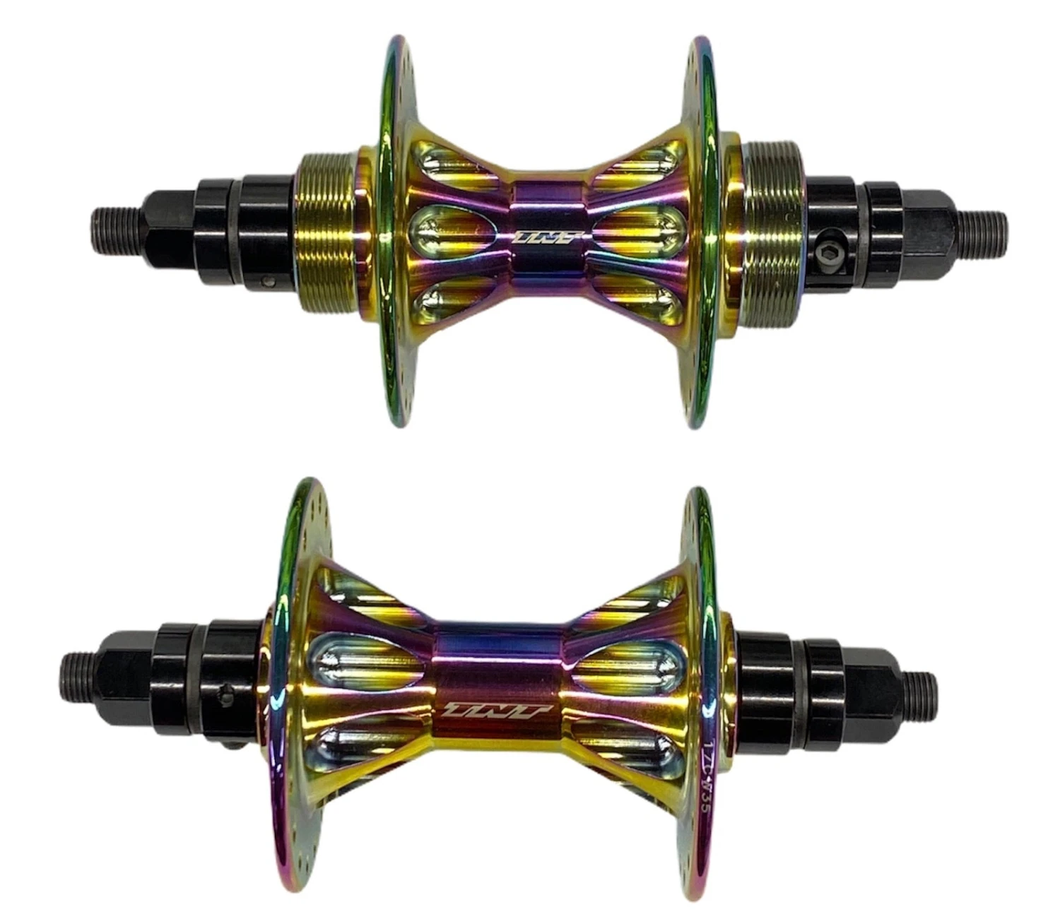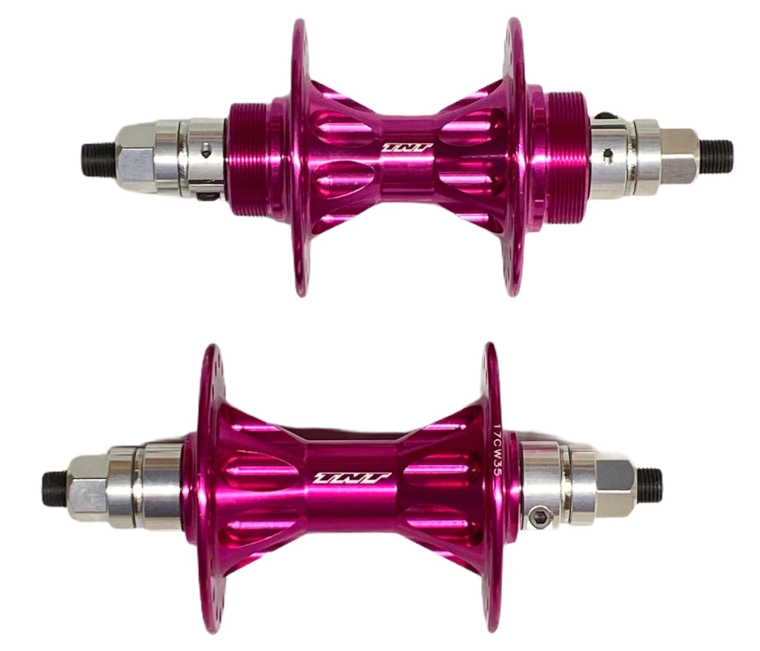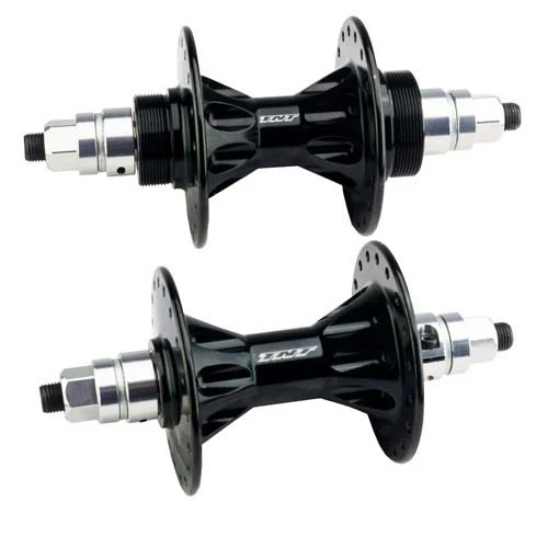 The TNT Revolver High Flange Hubset features all the same great looks and style as they did back in the 80’s. This High Flange hubest includes front and rear hubs, has sealed bearings, chromoly axles and the aluminum bearing collars TNT has always been known for.