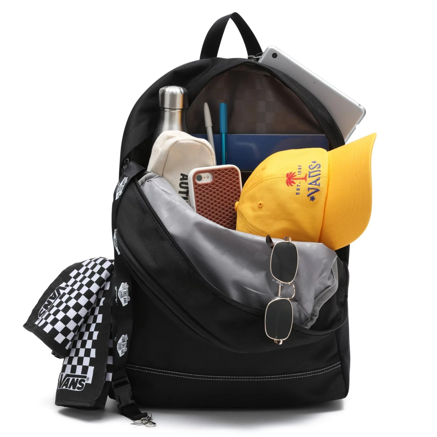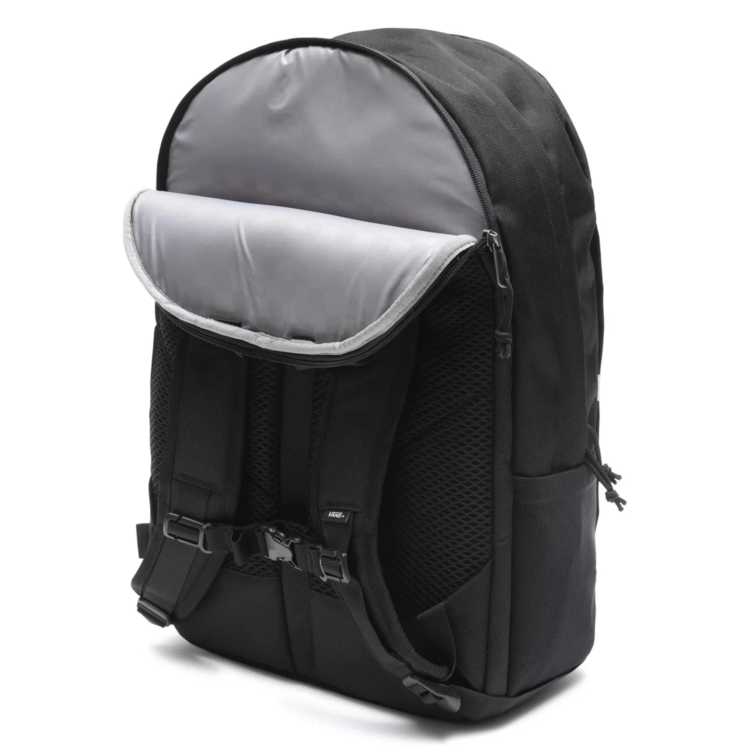 The Vans Construct Backpack is a do it all backpack made with CORDURA fabrics. CORDURA fabrics are known for their long lasting durability and resistance to abrasion and tearing. A spacious 27liter capacity that measures 19″ H x 13.5″ W x 6.5″ D. Convenient padded laptop compartment that fits most 15″ laptops, a fleece lined media pocket, and all the internal storage compartments you could ask for. Anti-odor treatment on the main compartment too keep the funk away. Ergonomic shoulder straps an a removable sternum strap make this comfy for even the long hauls.