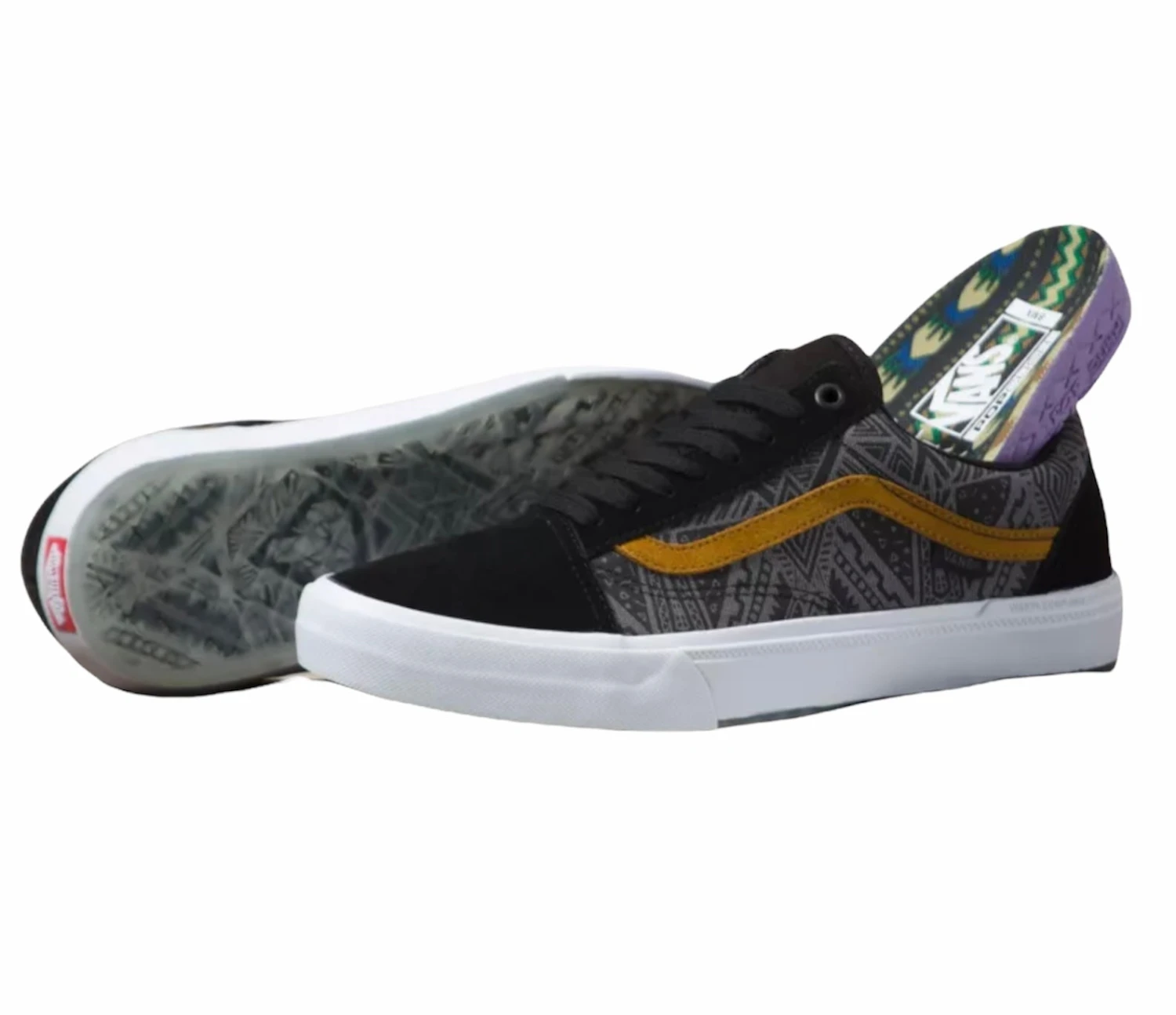 The Vans Courage Adams Old Skool Pro BMX Shoes are based on the classic old skool model with Courage’s twist. Made up of suede with a patterned upper, gold vans hit, and a clear icey bottom. Features the pro model comfort insole and padded collars to add even more comfort. Also featured is a BMX style waffle sole for superior pedal feel. These are a must!