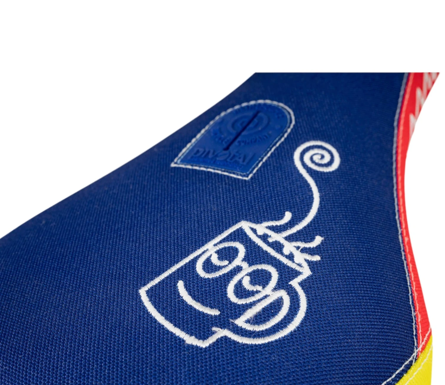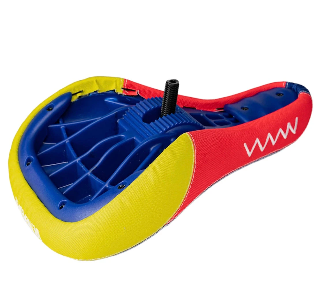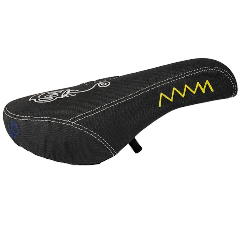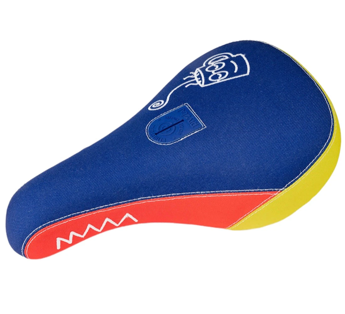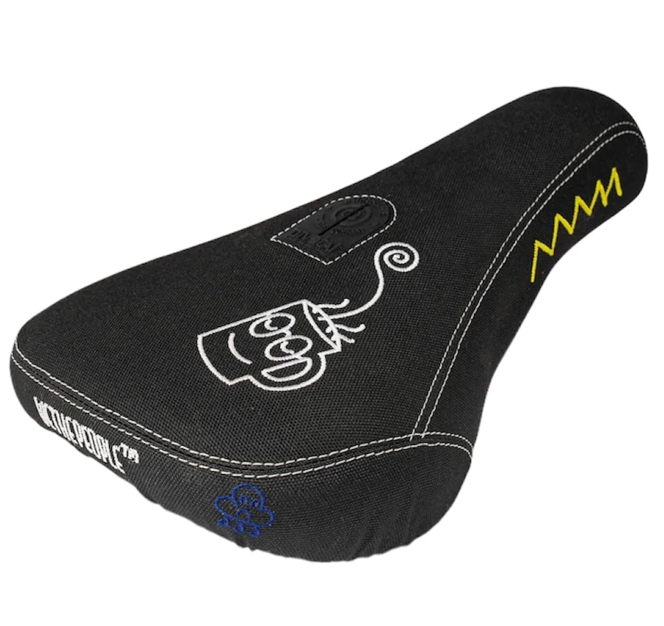 The We The People Dan Banks Pivotal Seat is designed off the WTP team fat pivotal seat, with signature colors and art from team rider Dan Banks. Logos inspired from his love of tea and British weather. Nylon pivotal base with an extra durable canvas cover an extra padding for a plush ride.