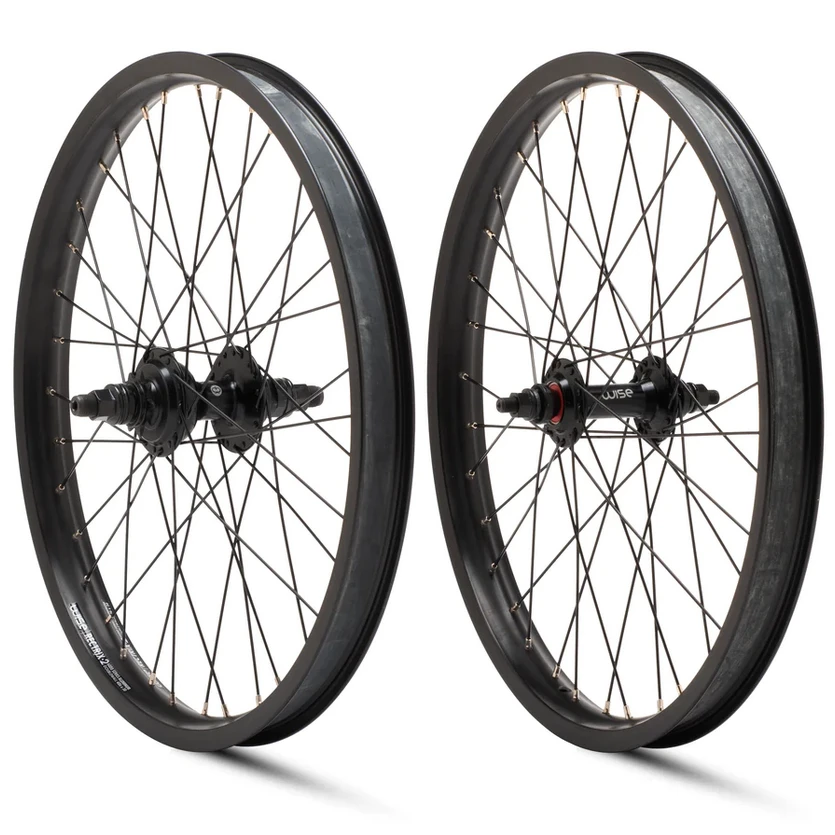 The Wise Rectrix2 Wheelset Bundle is prime ballin on a budget setup. This wheelset gives you everything you need to take these out of the box and start rollin’. Double wall rims and sealed hubs are what everyone is after these days, and wise gives you just that. Wise Double wall rims, both front and rear sealed hubs, an a 9T rear driver are all held together with 14g spokes and brass nipples. The complete package is wrapped up with Duo’s Stun 1 tires in a thicc 2.35″ size with premium rubber tubes.